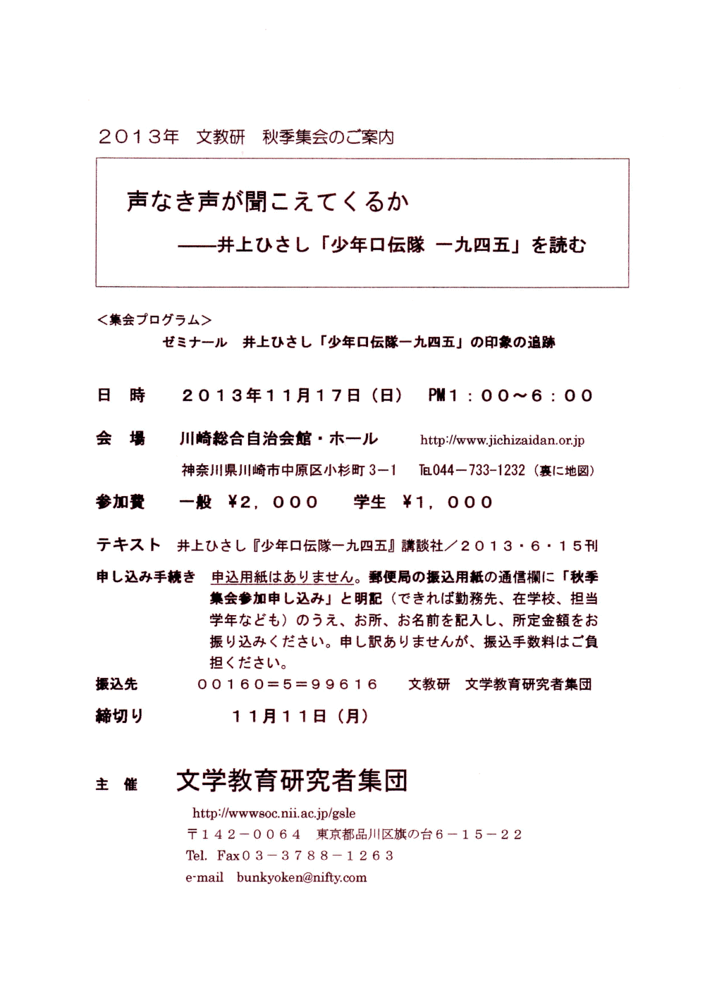 2013年文教研秋季集会 プログラム