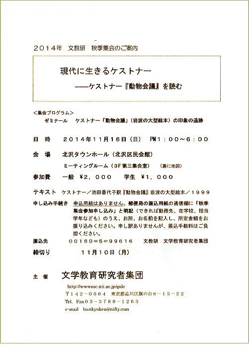 ≪≪≪ 2014年文教研秋季集会 ご案内 ≫≫≫